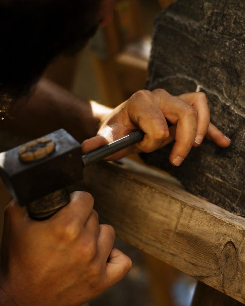 De retour au pays, je souhaitais réinvestir ces savoir-faires transmis par des maîtres dans leur domaine en créant un atelier d’artisanat de la pierre sans pour autant abandonner le graphisme :